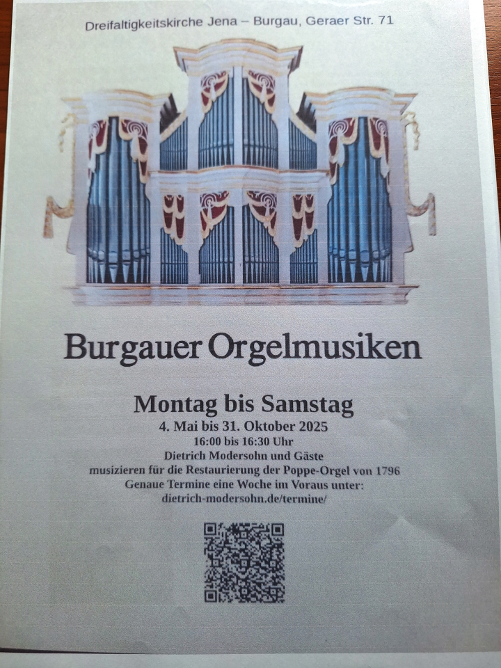 29. November 2025 Dorfball 22. November 2025 Kirchputz 31. Oktober 2025 Orgelkonzert 14. September 2025 Tag des offenen Denkmals 13. September 2025 Benefiz-Orgelkonzert 10. August 2025 Burgau Brunch 30. Juli 2025 Künstler*innen-Treff 28. Juli – 2. August 2025 Dezember 2025 Kunst-Symposium Nichts als die Wahrheit 22. Juni Ortsteilbürgermeister-Wahl 20. Juni 2025 Besichtigung Grenzstraße 14. Juni 2025 Kirchputz 11. Mai 2025 Maibaum-Setzen 30. April 2025 Walpurgisnacht 21. April 2025 Osterwasser holen & Eiersuche 18. April 2025 Osteressen am Wehr 11. April 2025 Lange Orgelnacht 17. März 2025 Mitglieder-Versammlung Ortsverein 15. März 2025 Saaleputz 28. Februar 2025 Abschied Andreas Fehrle 26. Januar 2025 Eröffnung Historischer Ortsrundgang